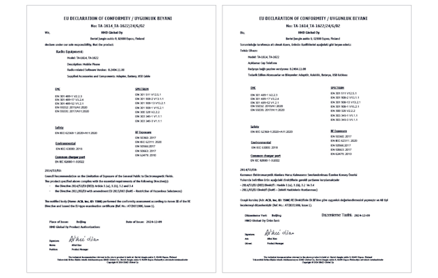 AB'de üretici ve/veya ithalatçı: HMD Global Oy, Bertel Jungin aukio 9, 02600 Espoo, Finlandiya.